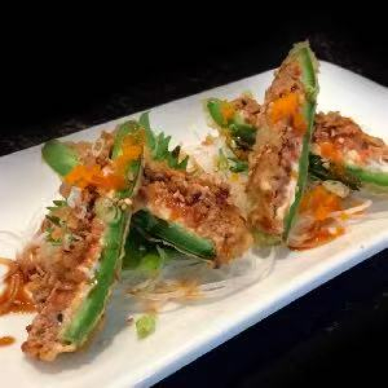 Deep fried w. spicy tuna, crabmeat & avocado in sweet spicy sauce